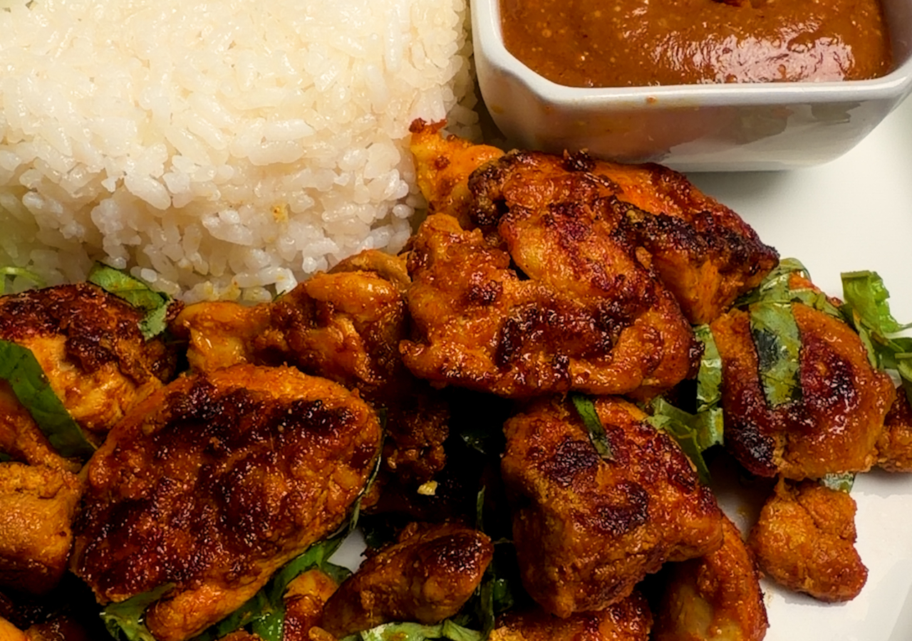 Chicken cooked directly in a fresh homemade satay curry paste,…