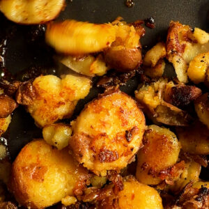 - Add garlic, soy sauce, rice vinegar, and sugar directly in the pan. Stir well and cook for 1 minute. Return the potatoes to the pan and stir for a few seconds, coating the potatoes in the sauce. It should be bold, garlicky, and punchy.