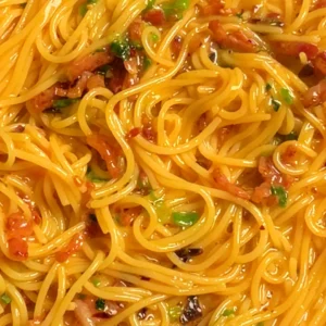 A Chinese-inspired carbonara where chili crisp, soy sauce, and eggs emulsify into a glossy, creamy sauce—no cheese, no cream, just savory heat.