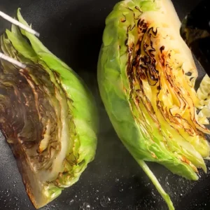 - Heat neutral oil in a large skillet over medium-high heat, place the cabbage wedges cut-side down, cover, and cook until lightly charred on the bottom.