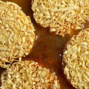 - Add noodles and stock to the pan. Press noodles down and bring to a simmer. Toss continuously as liquid reduces and noodles absorb the sauce, 3-4 minutes. Add a splash of water if it tightens too fast. Noodles should look glossy and clingy, not soupy.