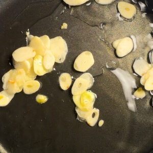- In a small pan, heat a thin layer of oil over medium-low. Add thinly sliced garlic and cook slowly, stirring often, until golden and crispy, 3-4 minutes. Remove immediately onto paper towel. They darken fast.