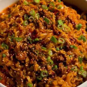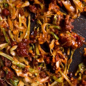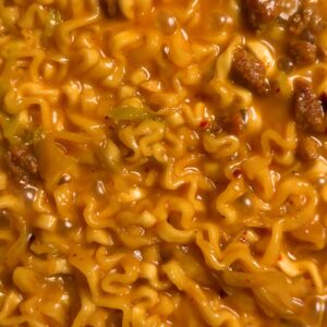 Crispy ground pork, cabbage, and OTOKI Cheesy Ramen reduced into a thick chili-cheese sauce that clings to every noodle
