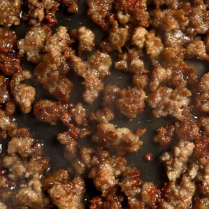 - Heat a wide skillet over medium-high. Add ground pork in a single layer and let it sit undisturbed 2–3 minutes until the bottom darkens and caramelizes. Break apart and continue cooking until most pieces have crispy, caramelized edges, 3–4 more minutes.