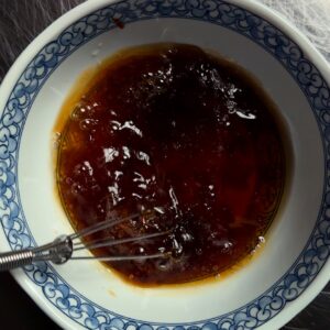 - Combine oyster sauce, soy sauce, sesame oil, sugar, and water. Set aside.