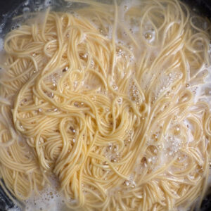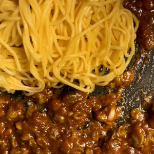 - Add noodles directly to the sauce and toss until every strand is fully coated. Add a splash of water if it tightens too fast.