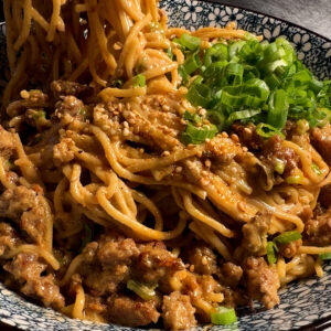 Ground pork in a nutty spicy tahini-chili sauce over thin wheat noodles. Simplified Dan Dan with all the depth, none of the complexity.