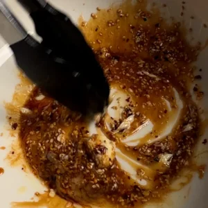 - Warm soy sauce, maple syrup, and butter together in a small pan.