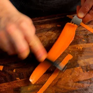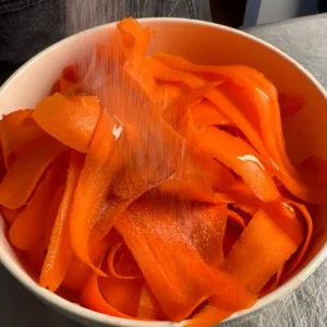 - Cut carrot into long ribbons by using a vegetable peeler.