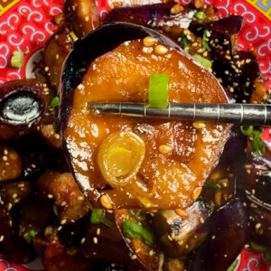 Chinese eggplant seared until golden and caramelized, tossed in a savory oyster garlic glaze.
