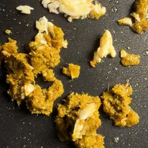 • Heat oil in a pan over medium heat. Add green curry paste and garlic. Cook 30–60 seconds until fragrant.